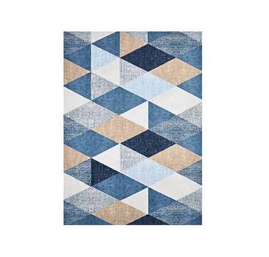 Printed Flat Room Carpet, Plain Rug for Living Room – 5x7 Feet (Blue)
