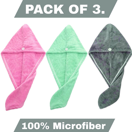 Iris Hair Drying Towels Pack of 3 Super Soft Microfiber Quick-Dry (Pink,Green,Blue)