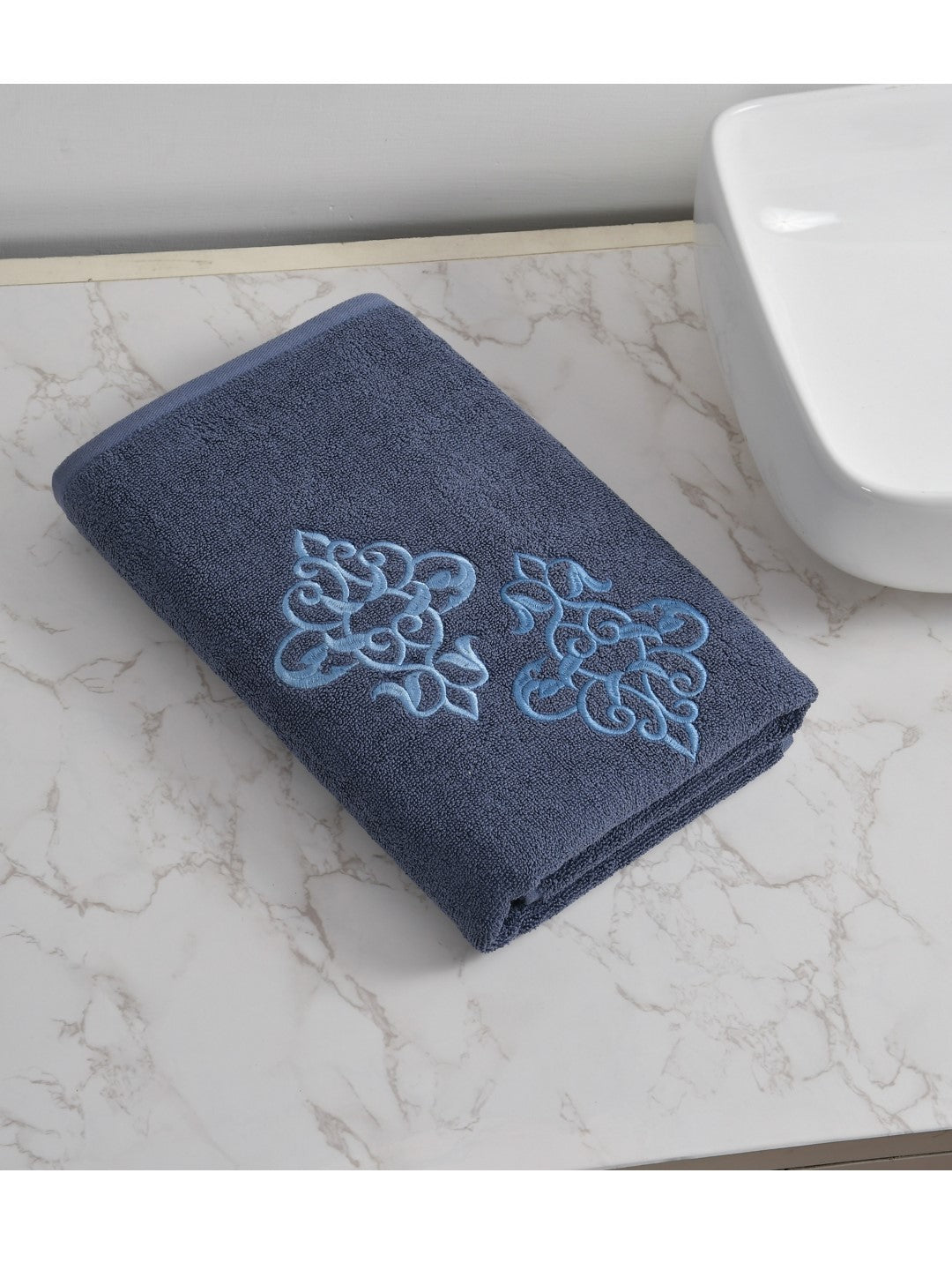 Embroidered Bath Towel 100% Cotton 600 GSM Large Size 72x142 CM Navy Blue