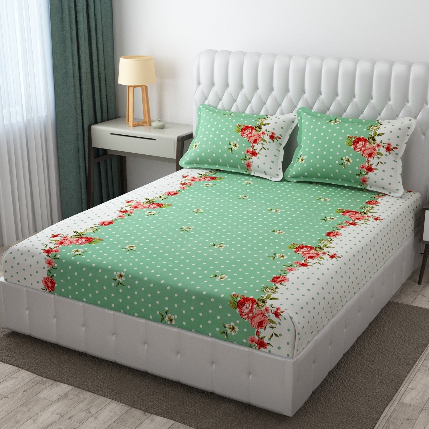 - Pillow Covers: The set includes 2 pillow covers, which are made from the same high-quality Glace Cotton fabric. These pillow covers are designed to match the bedsheet, enhancing the overall aesthetic of your bed.