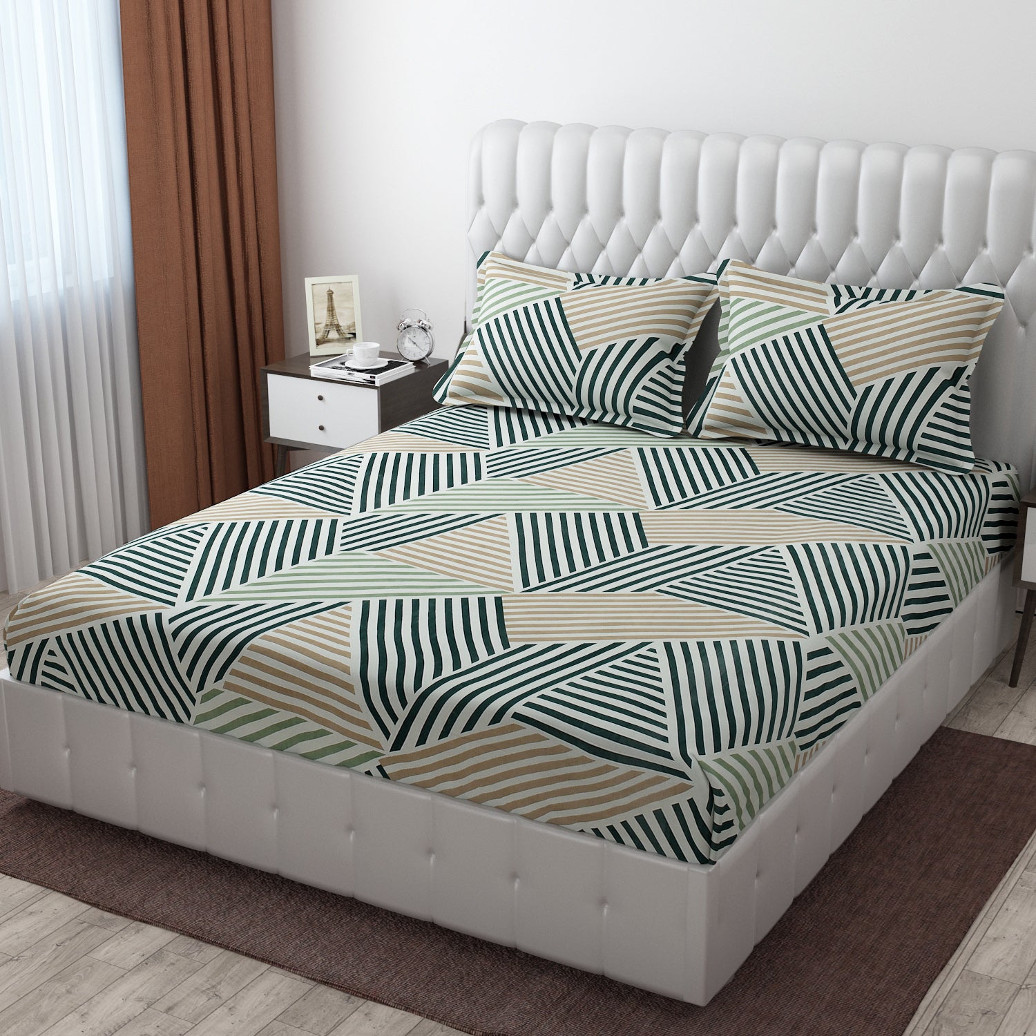 - Pillow Covers: The set includes 2 pillow covers, which are made from the same high-quality Glace Cotton fabric. These pillow covers are designed to match the bedsheet, enhancing the overall aesthetic of your bed.