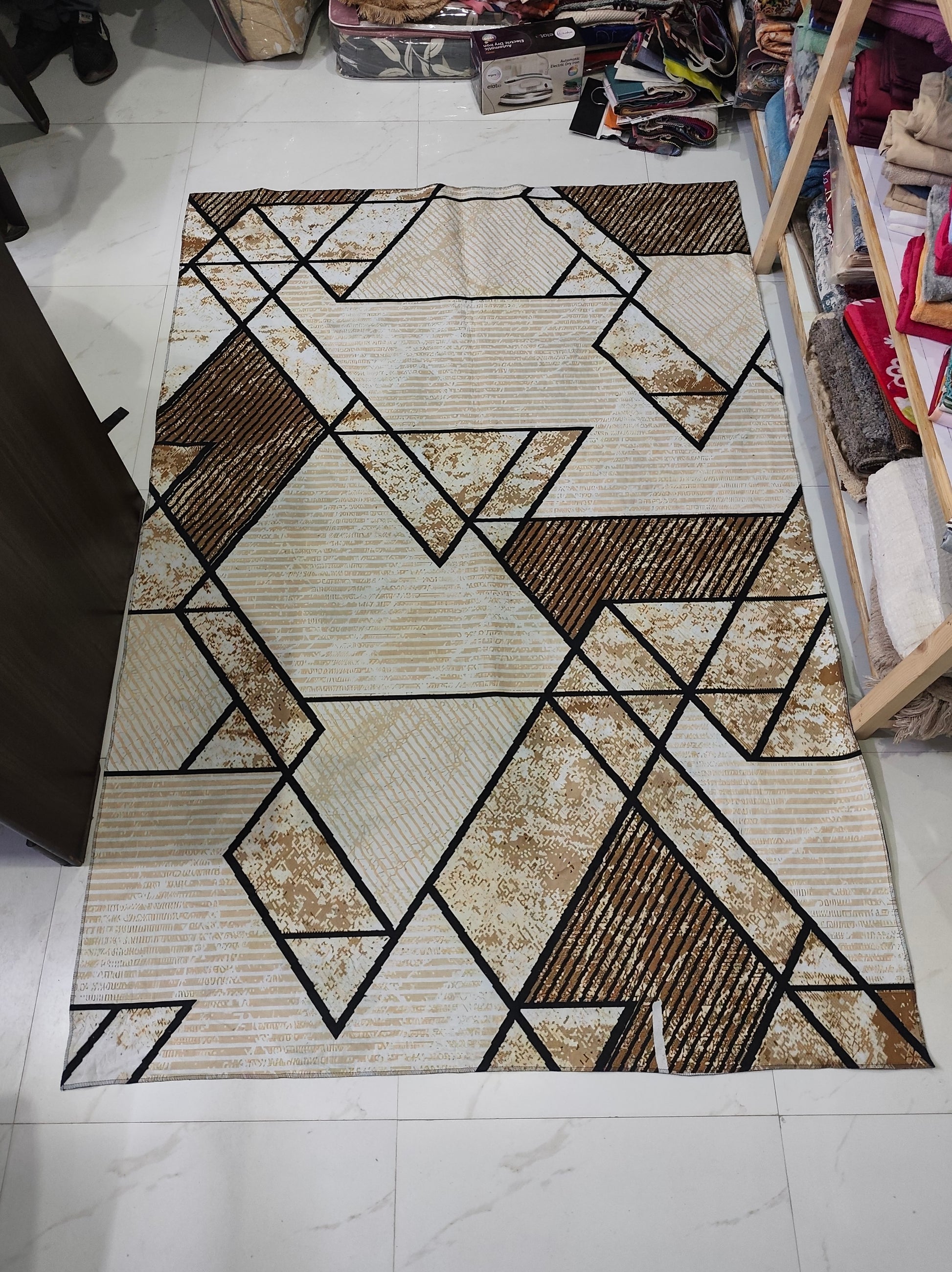 Printed Flat Room Carpet, Plain Rug for Living Room – 5x7 Feet (Beige Brown)